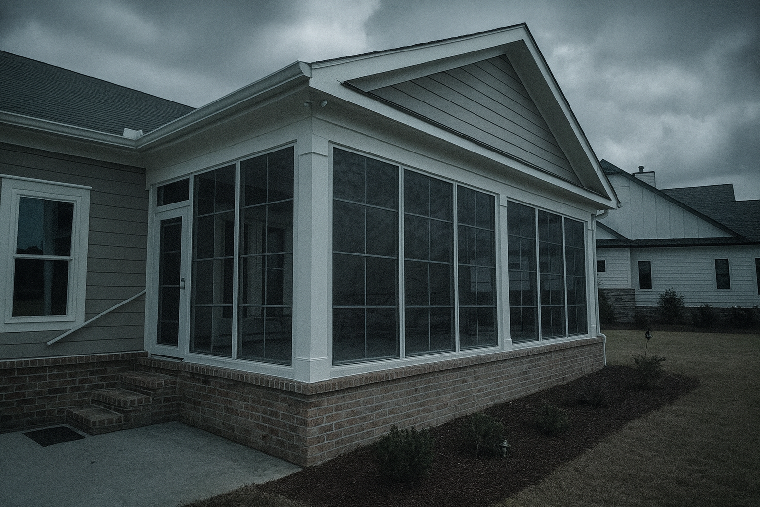 Leaves, branches, and debris can collect around your sunroom roofline and gutters. Clearing them out prevents water backups that could lead to leaks or structural damage. If your screen room sits on a slab, make sure water drains away from the structure during heavy rain.